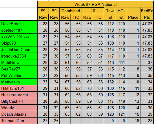 FED EX Handicaps